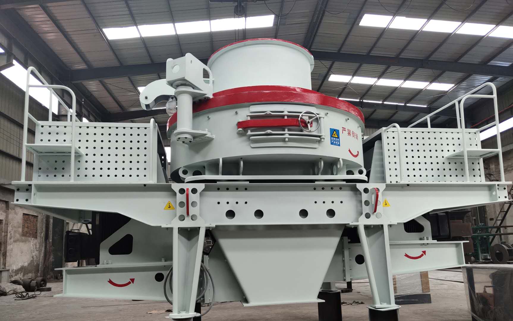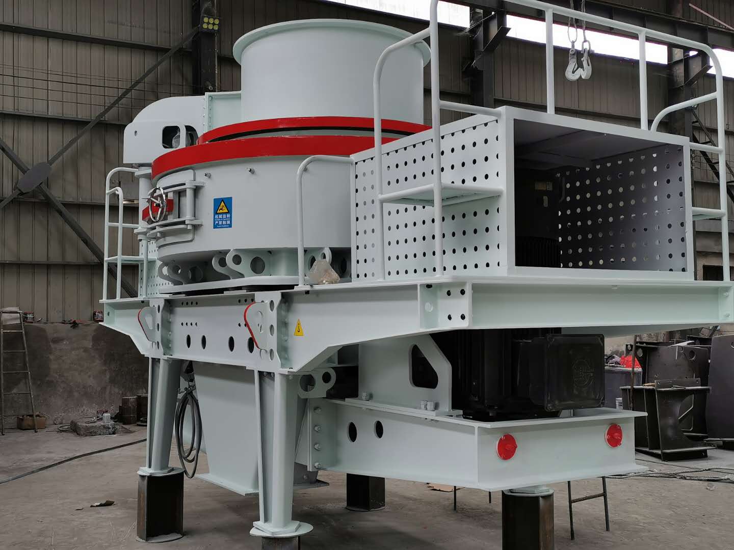 安裝時應將沖擊式制沙機調平使其主軸與水平面垂直。碎石機上方應設置起吊設備,起吊設備能力按制沙機重量考慮,在制沙機上方應留有起吊空間,在制沙機一側留適當空間,以備檢修時用。
